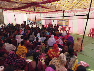 धरना प्रदर्शन में बैठी आंगनबाड़ी कार्यकर्ताओं ने जमकर नारेबाजी की एवं अपनी मांगों को जायज बताया साथ ही हास्य व्यंग आदि के माध्यम से अपनी पीड़ा भी व्यक्त की वही आंदोलन को समर्थन देने पहुंची जिला पंचायत सदस्य रानी पटेल ने प्रदेश सरकार की जमकर खिंचाई करते हुए आंदोलन में डटे रहने के लिए कहा ।ज्ञात हो कि आंगनबाड़ी कार्यकर्ता प्रदेश सरकार से घोषणापत्र के अनुरूप आंगनबाड़ी सहायिकाओं को कार्यकर्ता के रिक्त पद पर शत प्रतिशत एवं कार्यकर्ताओं को सुपरवाइजर पद पर शत-प्रतिशत पदोन्नति की मांग विभागीय सेवा भर्ती नियम में संशोधन एवं सरकार द्वारा अपने जन घोषणापत्र में घोषित नर्सरी शिक्षक पर उन्नयन कलेक्टर दर पर वेतनमान आदि की मांग कर रही है।