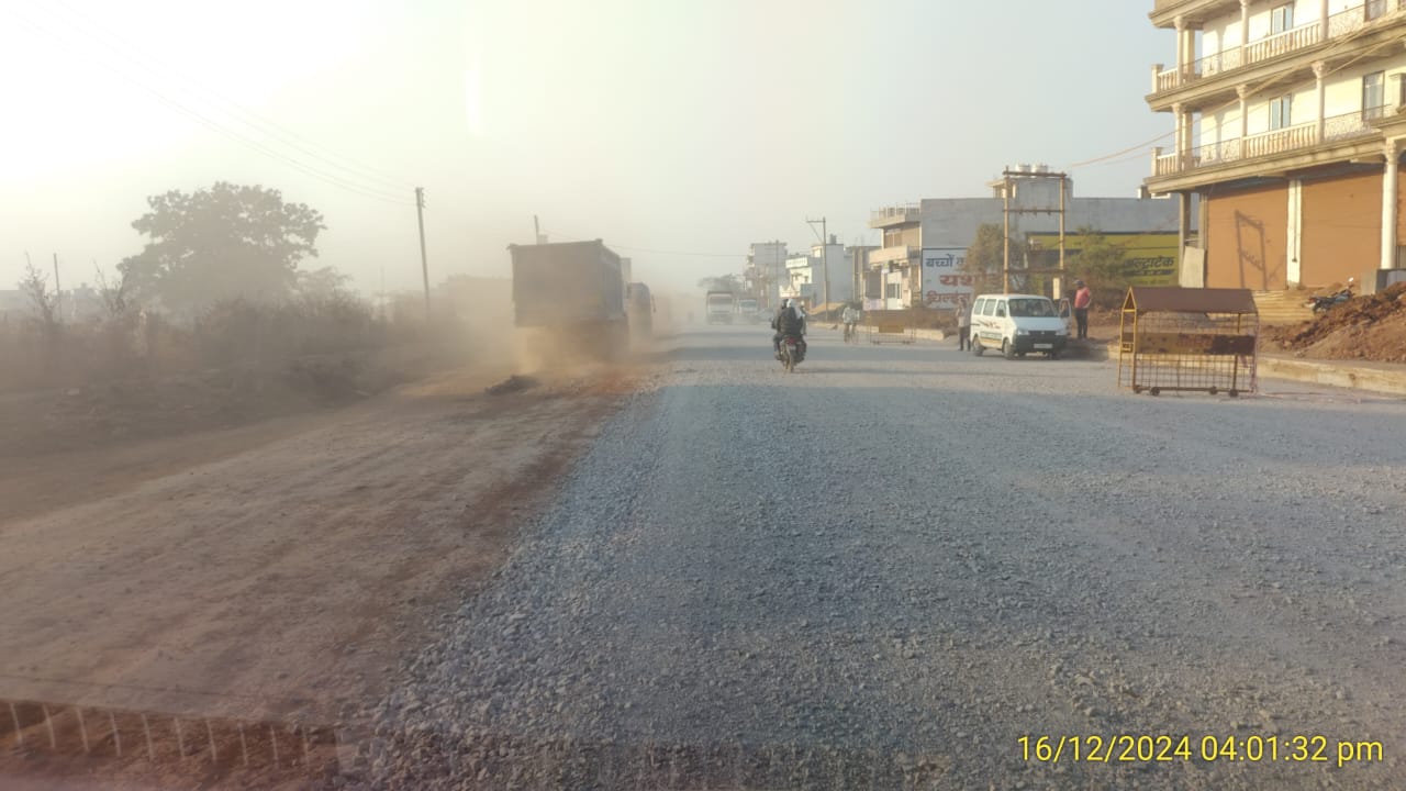 आपको बता दें कि सड़क निर्माण के दौरान ठेकेदार द्वारा सड़क मे पानी कि छिड़काई नहीं किये जाने पर राहगीरों को सड़क से उड़ने वाली धूल से सामने से आ रहे भारी वाहन दिखाई नहीं पड़ता जो कभी भी दुर्घटना होने की संभावना बना रहता हैं साथ हीं , उड़ने वाले भारी धूल से राहगीरों कर स्वास्थ्य पर बुरा असर पड़ सकता हैं। पर सड़क विभाग के जिम्मेदार अधिकारीयों को आखिर क्या होगा...?? जो अपने कार्यालय मे बैठे हीं मूल्यांकन कर नजर बनाये रखतेहै औऱ ऐसे सड़क विभाग के जिम्मेदार अधिकारी के सुस्त व उदासीन होंने कारण ठेकेदार द्वारा घोर लपारवाही बरती जा रही हैं जो निर्माणाधीन सड़क मे पानी का छिड़काव नहीं किया जा रहा हैं जिसका खामियाजा राहगीर को उड़ने वाले धूल को पार कर करना पड़ रहा हैं।